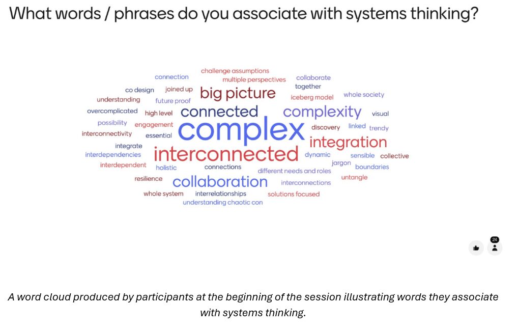 The session began with inviting participants to reflect on what systems thinking means in the context of climate adaptation planning. An interactive icebreaker quickly highlighted the importance of applying systems thinking to climate adaptation challenges, with the need for approaches and tools that recognise how challenges are interconnected, operate across different scales, and change over time.